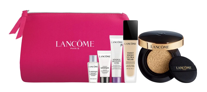 底妝天后無瑕組:零粉感超持久粉底SPF38/PA+++ (正產品)+或超極光精華水粉底 (正產品)+任一粉底系列正產品+超緊顏白金青春輕乳液15ml+超未來肌因賦活露5ml+超極光活粹晶露10ml+法式粉紅化妝包X1