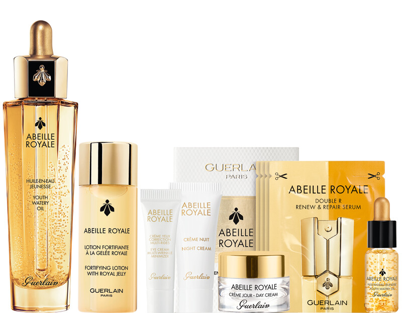 組合內容:皇家蜂王乳平衡油50ml(正品)/皇家蜂王乳蜜露 40ml/蜂王乳雙導精華體驗禮(輕巧盒裝版)/皇家蜂王乳蜂蜜修護霜 7 ml/皇家蜂王乳平衡油5ml/皇家蜂王乳修護晚霜5 ml/嬌蘭皇家蜂王乳超拉提亮眼霜3m