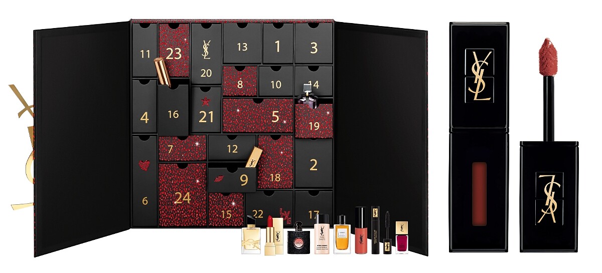 YSL聖誕月曆首度穿上時髦紅黑豹紋新裝,內容物包含品牌經典熱銷唇彩、保養、香水等明星產品。官網預購聖誕月曆即贈奢華緞面漆光唇釉#420火辣節奏。