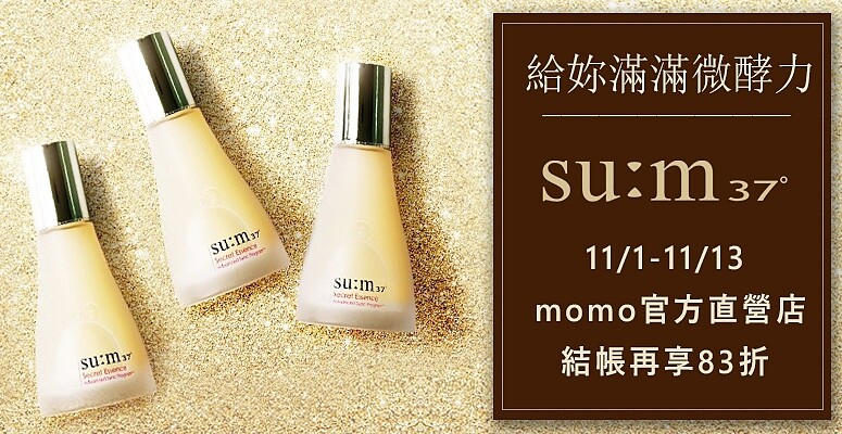 歡慶雙11活動檔期,su:m37甦秘momo官方直營店,祭出不同於百貨通路的超殺優惠,一鍵下單就能搶購到韓流女神全智賢及男神李鍾碩都愛用的「青春奇蹟活酵肌秘露限量禮盒」及經典商品的超值特惠、消費滿額還能再享現金折扣等好禮回饋。