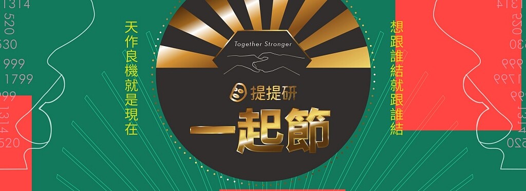 10/30~11/3:於提提研活動頁登記參加「一起券」抽獎,只要以手機號碼註冊,官方將在11月4日隨機抽出手機末碼任8碼、高達八成的中獎機率獲得NT179、象徵「一起揪」的購物金,是提提研今年釋出最高額度。