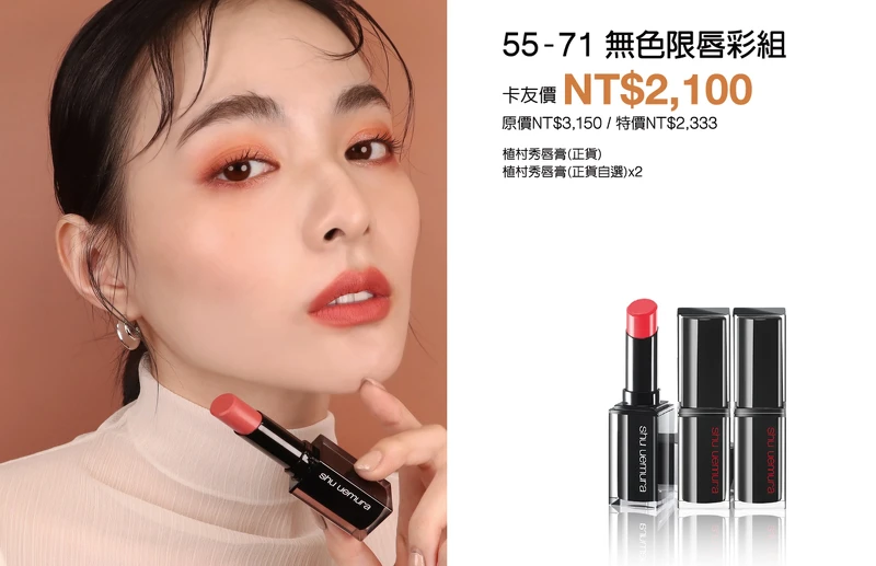 脫下口罩那刻,還是要靠口紅幫好氣色撐場面啊!這組唇膏控一定要收,還可任搭2色妳喜歡的植村秀唇膏,平均一支才$700,真的太讓人瘋狂~