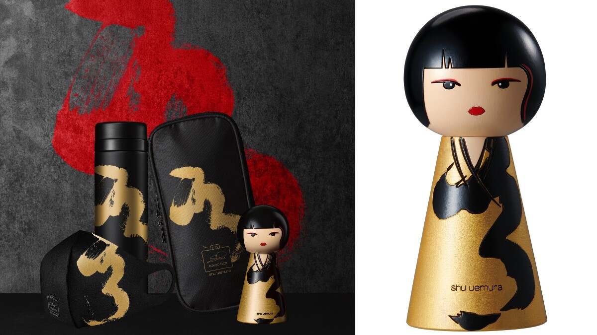 前衛時尚的木芥子穿著有黑色「秀」字裝飾的金色和服,是由國際彩妝總監打出角康所設計。材質使用精心挑選,並獲得 FSC 永續認證的櫻花木製造,再由精驗豐富的專業木芥子工匠完成彩繪。木芥子會刻上序號,限量 50 個。