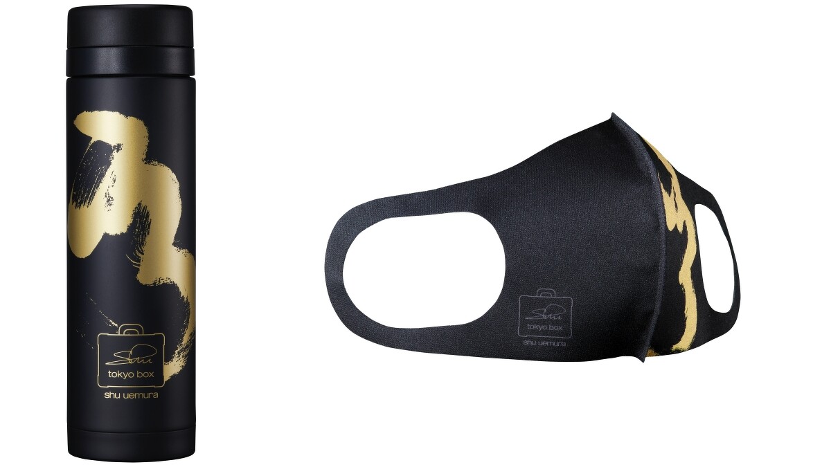 shu tokyo makeup box 開幕次初代表性的獨家產品,讚頌創辦人的開創精神與創意。限定版產品包括:金萃潔顏油、#55零刷痕粉底刷、假睫毛、迷你化妝箱、化妝包、購物袋、手提袋,甚至有旗艦店限定版木芥子、保溫瓶、口罩等等。