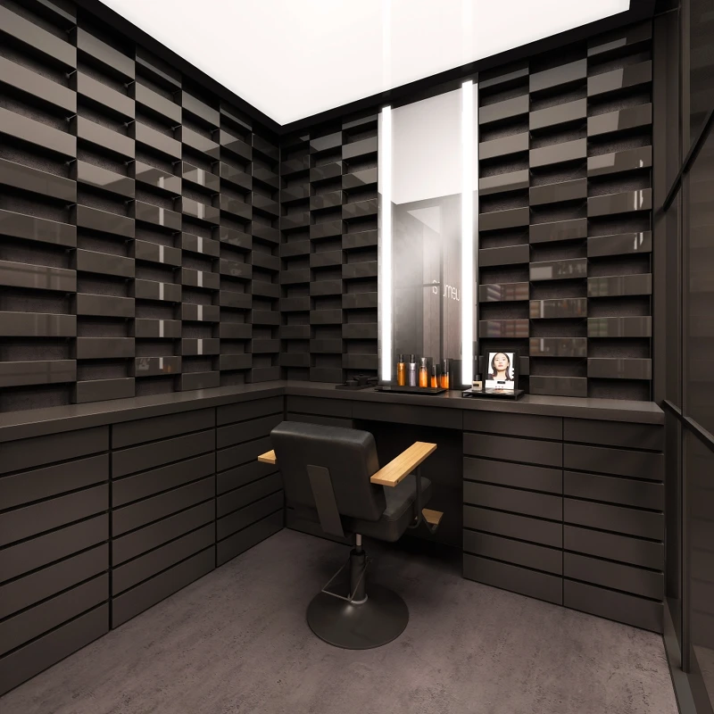 shu tokyo makeup box 不僅外觀,店內也是以化妝箱內部作為設計概念,規劃了四間工作室提供創意體驗。