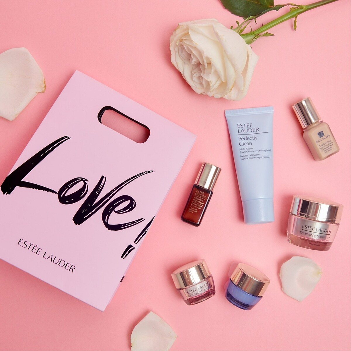 2021/5/7(五)~5/8 (六)至雅詩蘭黛全台七個限定櫃點,消費滿NT5,200,即可擁有這個限量的「粉紅泡泡MY LOVE愛無限氣球禮盒」,包含特製巨型LOVE氣球、年輕無敵修護持妝組(內含特潤超導賦活精華5ml、年輕肌密無敵霜15ml、年輕肌密無敵晚霜7ml、年輕肌密無敵眼霜5ml、粉持久完美持妝粉底7ml、細緻煥采雙效淨化潔面乳30ml,價值NT3,620),超福獻禮讓各位媽咪們享受雅詩蘭黛無時無刻的全方位呵護。