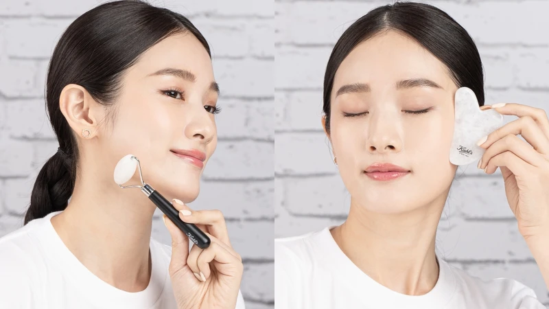 內含玉石緊緻板以及玉石滾輪各一,使用上手感輕盈,加上玉石溫度較低,按摩在臉上冰冰涼涼超舒服。