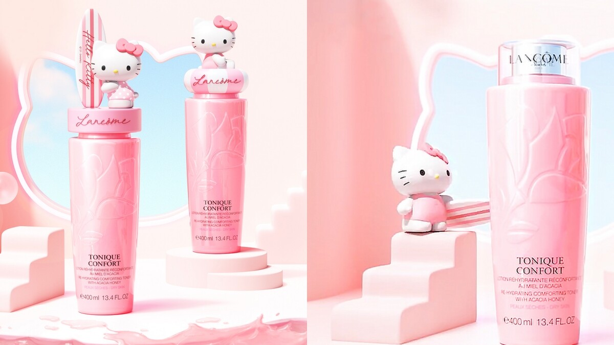 既然本身就是粉紅色,這次蘭蔻粉水乾脆找上也是粉紅色路線的可愛教主Hello Kitty推出聯名包裝。