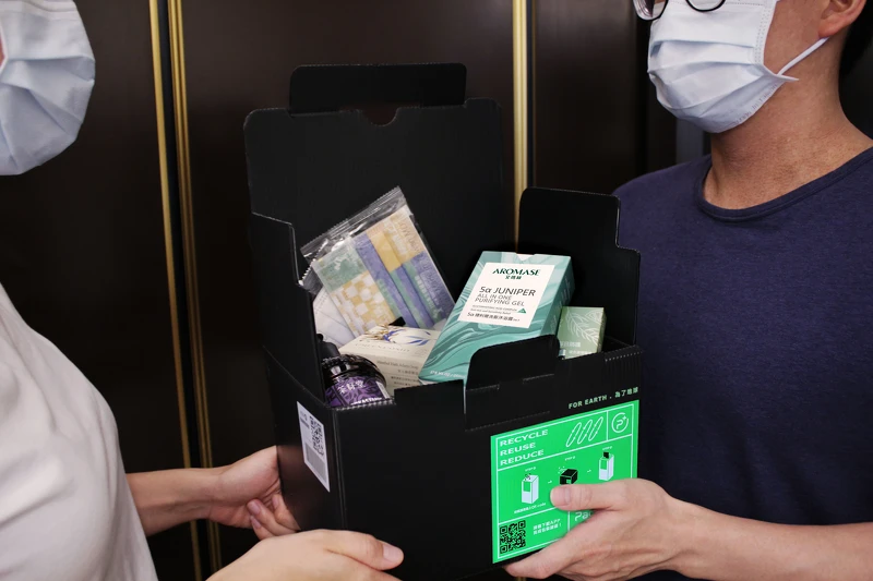 因應近日疫情升溫,艾瑪絲於12小時內號召10家企業共同響應,捐助「讓艾喘息防疫循環物資箱」,號召4家B型企業包括:AROMASE艾瑪絲、茶籽堂、Blueseeds芙彤園、綠藤生機共同響應,也串聯6家跨界單位:新北市政府體育處、美德醫療、台灣可林生化科技、因特力淨、GREENCONUT綠果,並由PackAge+配客嘉贊助循環配送箱,十家串聯響應企業共同協助社團法人新北市家庭照顧者關懷協會,捐助供給居家防疫用品,為新北市家庭照顧者盡心力。