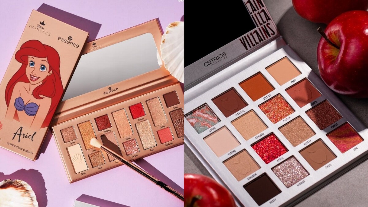 Disney × essence小美人魚眼影盤一次囊括14種色系,以暖色調像是粉金色、暖棕眼影色添加甜美輕柔感,就像海洋中的愛麗兒般擁有溫暖眼神。Disney × Catrice壞皇后眼影盤代表色為蘋果鮮豔大紅色及暖色系棕橘,刻畫出壞皇后追求美麗決心及毅力。