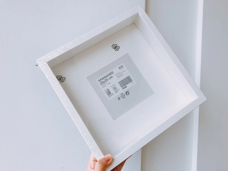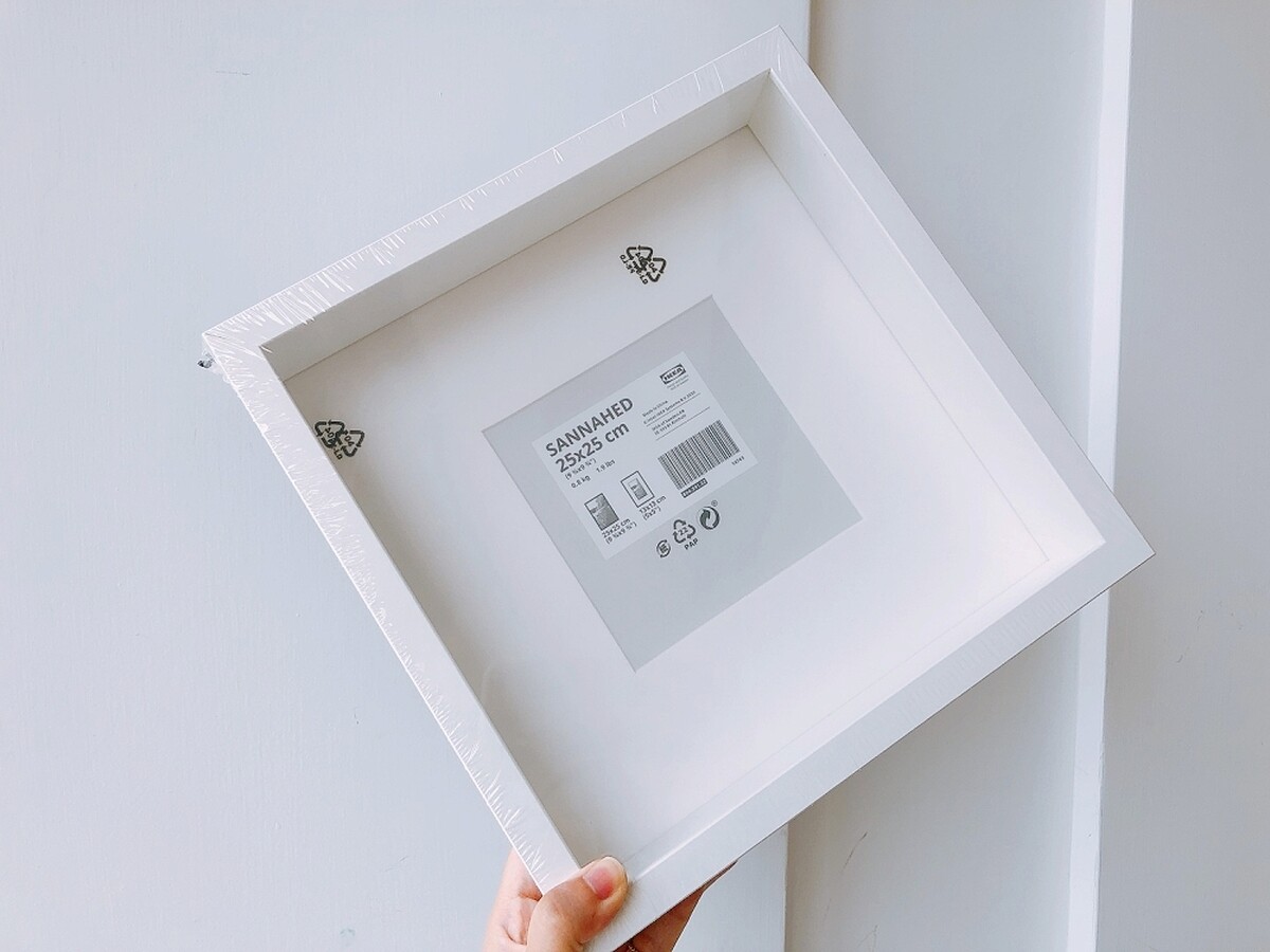 網路上最推薦改造的IKEA相框首選是SANNAHED這款,25cm X 25cm的正方形大小,有白、黑兩色可選,而且單價只要NT199真的超親民,不用花大錢就能一物二用!
