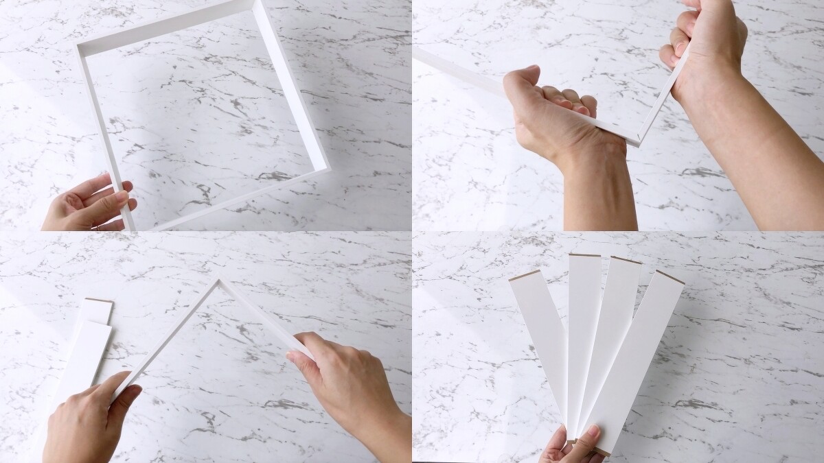 將內框四邊徒手拆開,得到四個木條。