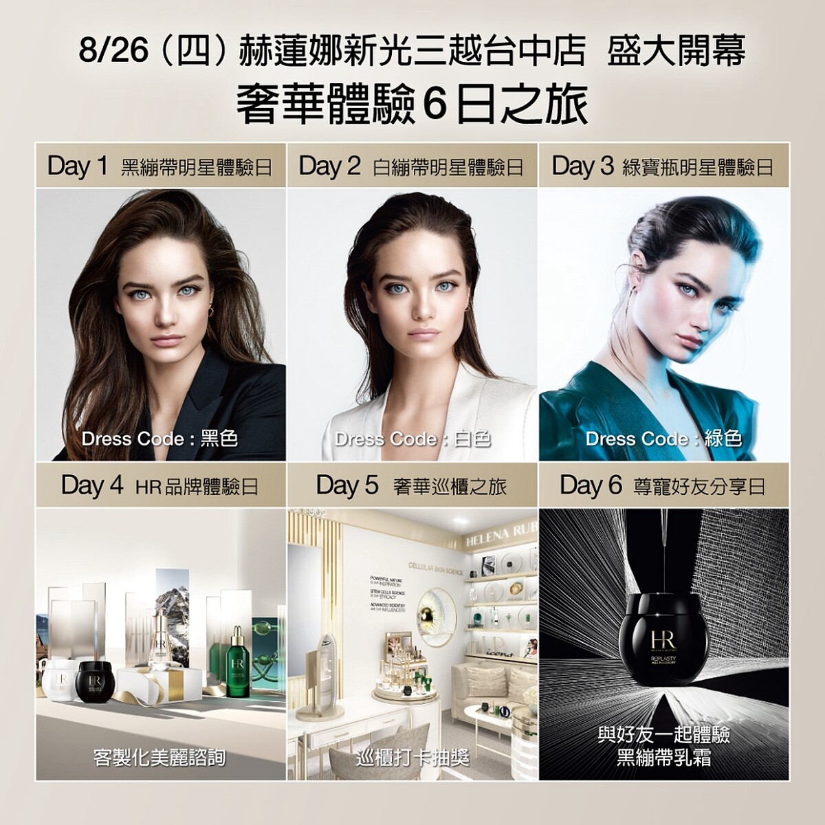 8/31Day 6赫蓮娜尊寵好友分享日:當天與好友共同於赫蓮娜台中新光專櫃消費不限金額,雙人同享加贈黑繃帶乳霜5ml(每人限贈一個,限量50份)