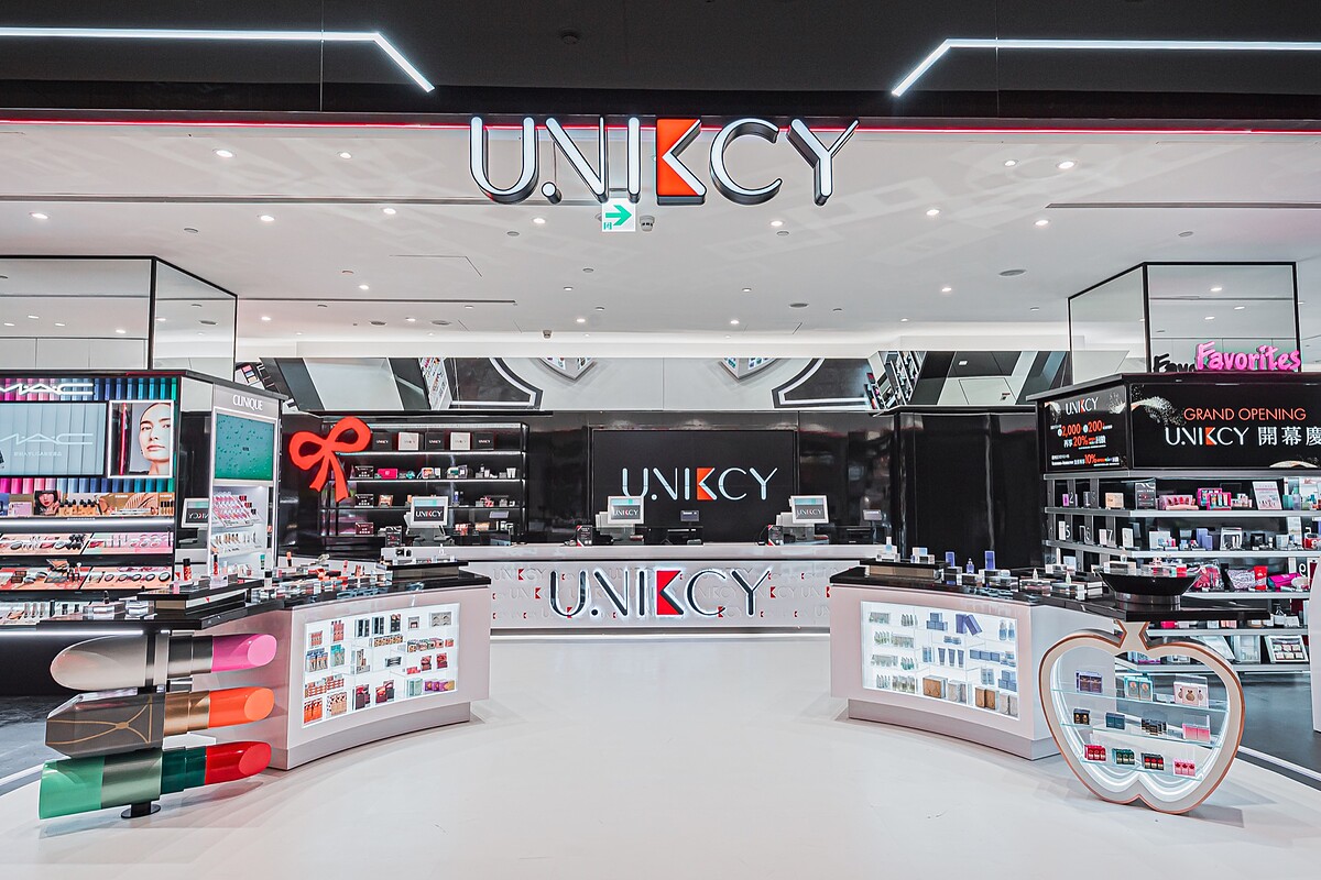 UNIKCY品牌由統一集團原創,高雄夢時代購物中心1樓櫃位以黑、白、紅為主視覺,入口兩側以口紅及香水瓶造型雙展示台迎賓;進入館內,若大的紅色蝴蝶結,象徵著UNIKCY分享美麗浪漫。