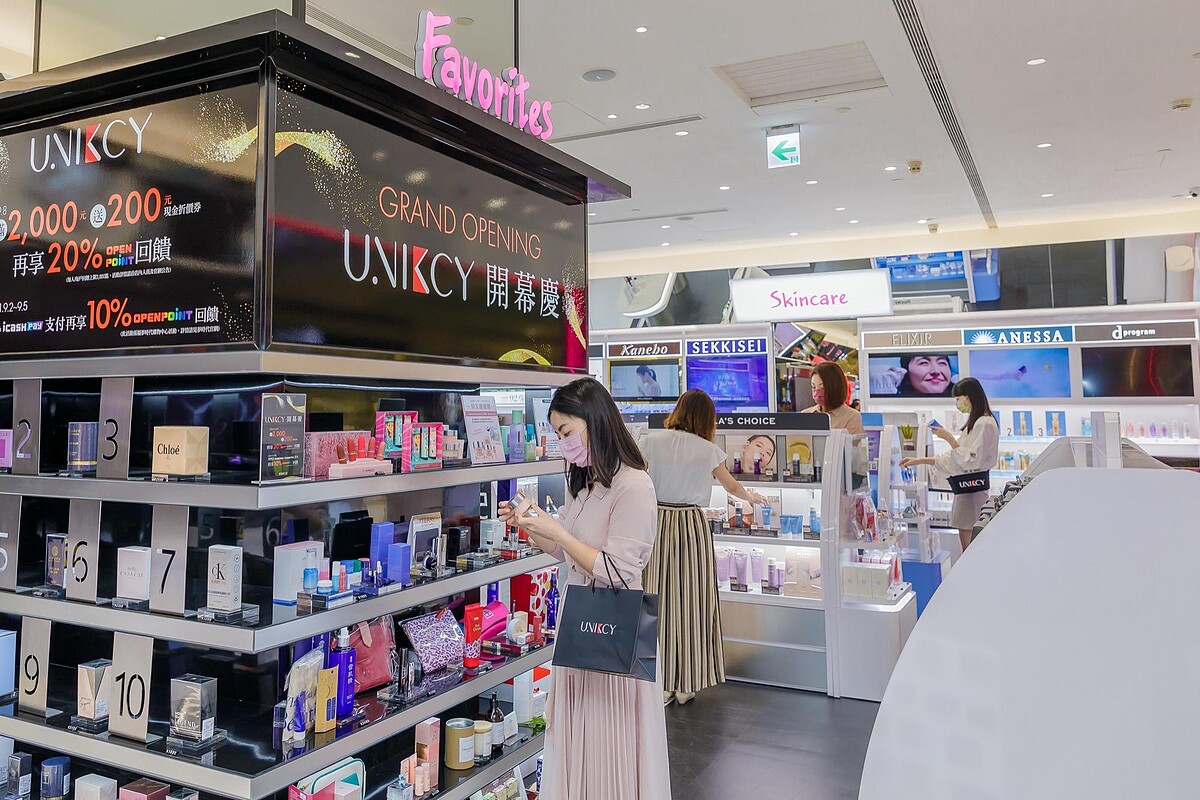 UNIKCY占地百坪,黑白相間的地面上,站立著性感艷紅的試妝台、潔淨純白的保養體驗桌。有別於其他美妝通路,最大的特色在於同步引進各大品牌mini size商品,同時精選消費者最愛的「Favorites」專區、Top 10暢銷首選,以及結合流行話題的「Pop-Up Store」,首波由倩碧進駐,分享最新時尚資訊。