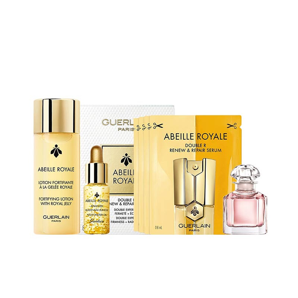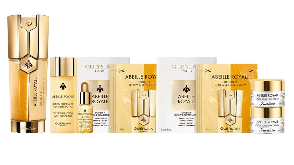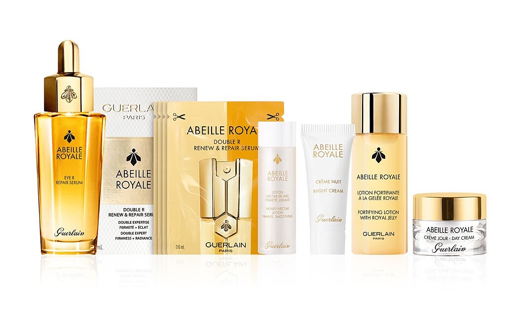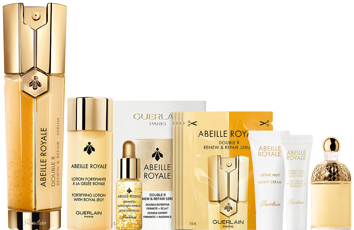 內含:皇家蜂王乳修護晚霜50ml(正品)/皇家蜂王乳蜜露 40ml/皇家蜂王乳平衡油3G 5ml/皇家蜂王乳雙導精華體驗禮(輕巧盒裝版)/皇家蜂王乳蜂蜜修護霜 7 ml