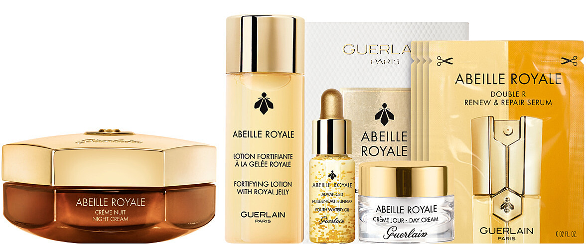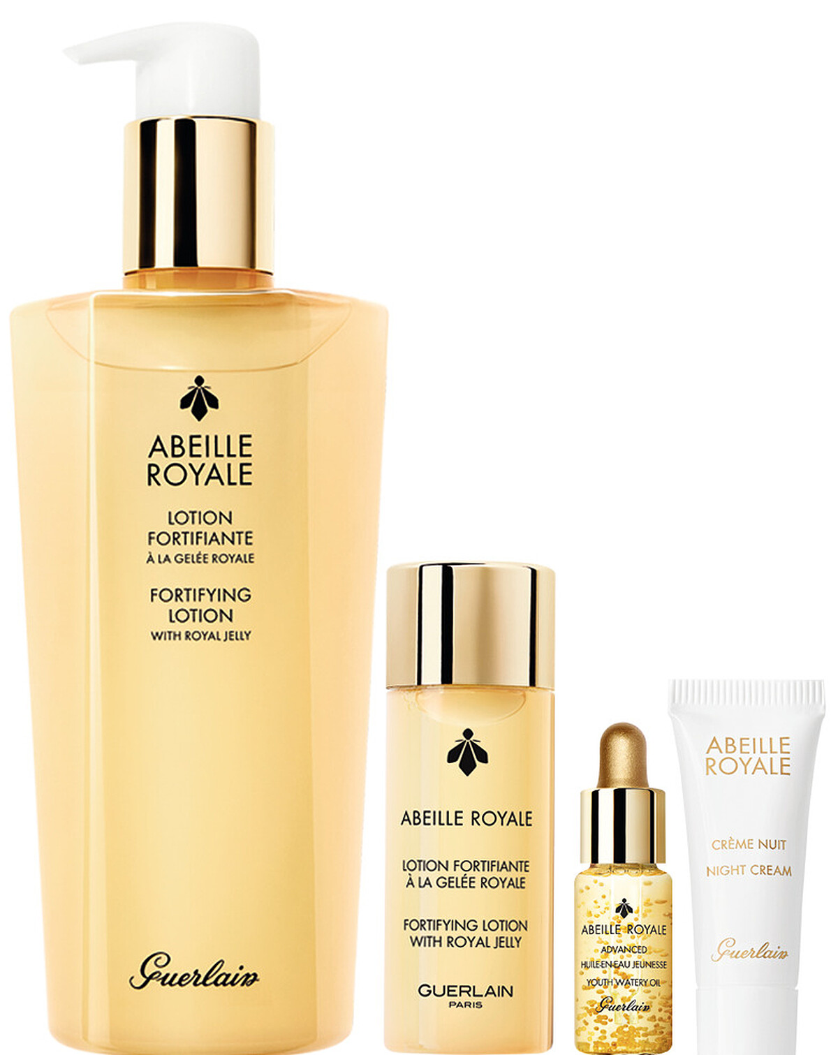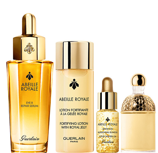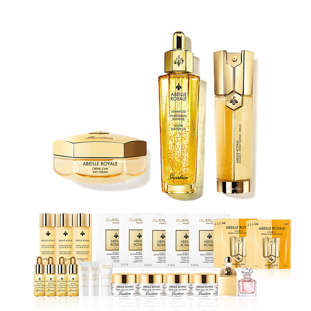 內含:皇家蜂王乳修護晚霜50ml(正品)/皇家蜂王乳蜜露 40ml/皇家蜂王乳平衡油3G 5ml/皇家蜂王乳雙導精華體驗禮(輕巧盒裝版)/皇家蜂王乳蜂蜜修護霜 7 ml