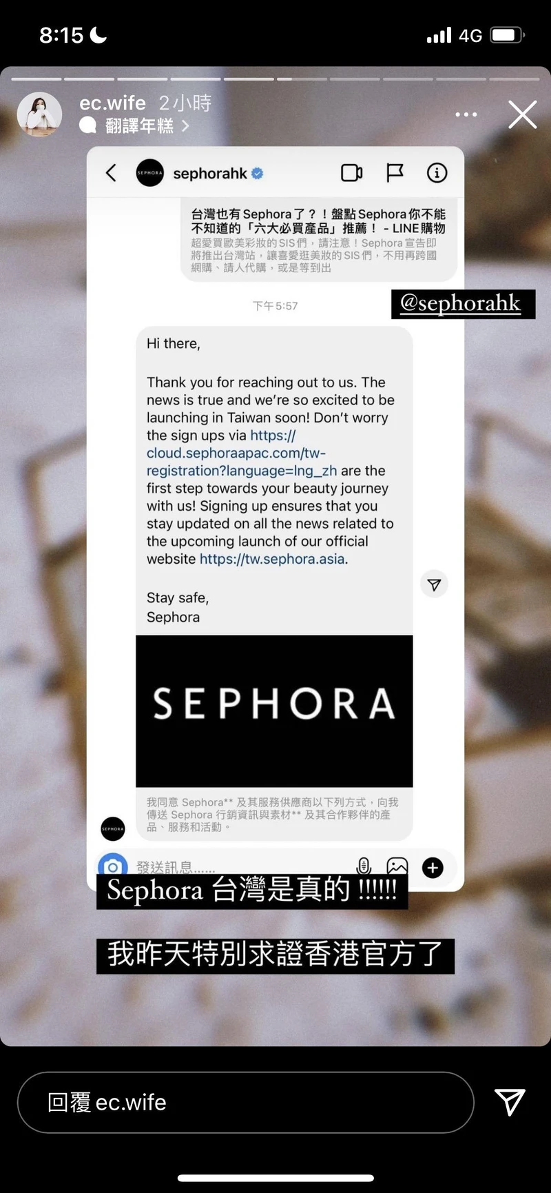 相信大家都很想知道這個消息究竟是不是真的?鑽研社群經營、行銷手法的電商人妻今天得到Sephora香港官方的回應,確認了Sephora即將登台的這個消息。