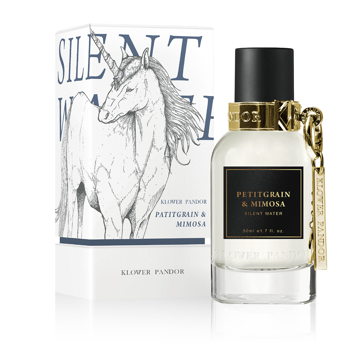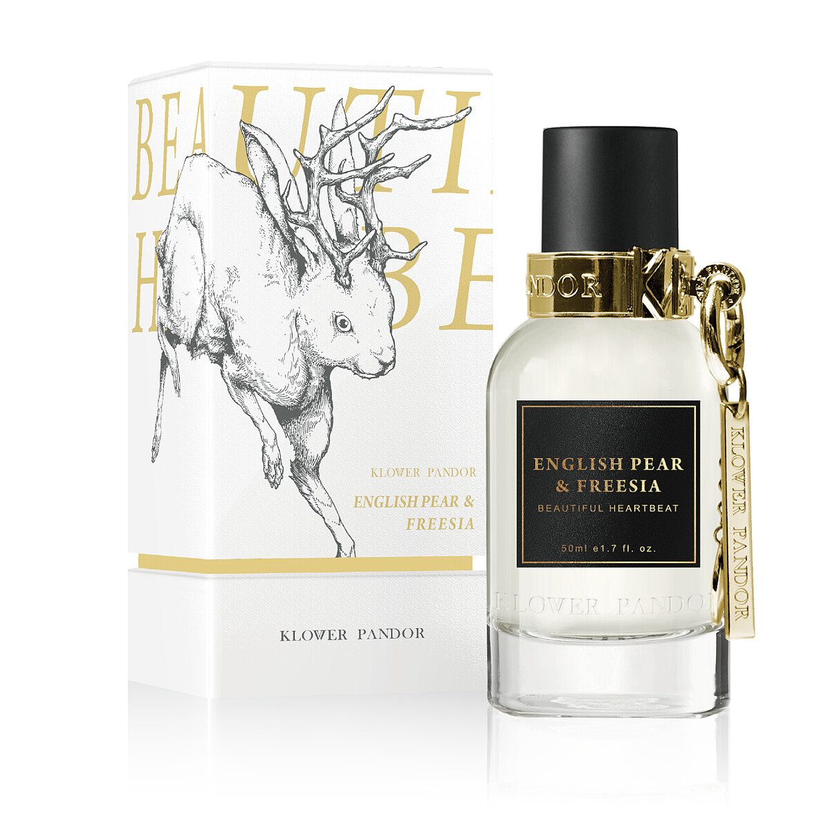 KLOWER PANDOR花了很長的時間鑽研各種不同的瓶身與尺寸為了找到最符合 品牌概念的完美輪廓,精雕細琢打造出奇珍異獸香水的奢華瓶身。圓弧流線型的 透明玻璃 瓶,刻畫了 LOGO字樣,體現品牌 柔中帶剛的美學邏輯。瓶身頂部是金色金屬旋轉扣環,與晶瑩剔透的玻璃瓶身呈現對比,再搭配品牌 LOGO金屬吊飾 ,讓整體 更顯時尚 與精緻 。