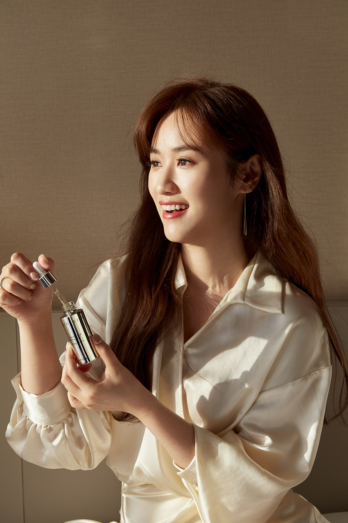 Sandy: 不喝咖啡,我覺得最快速消水腫的方法就是多喝水,早上起床就喝大量的水馬上就能代謝掉,讓妳整個人變得超輕盈,妝前除了濕敷《五月玫瑰花妍露》,還會用《鑽石級精華液+升級版》,它的質地偏濃稠,擦起來也比一般的精華更加保濕,能夠長時間保水、鎖水,即使吸收後皮膚還是摸得到潤澤感,超適合拿來當妝前急救保養,上妝後整個膚況會好到不行,又透又亮。透過7大逆齡胜肽複方加上4大植物幹細胞成分,快速拉提緊實肌膚,補水膨彈肌膚,更棒的是升級版還加入了「海藻緊膚複合物」、「可可胜肽」有很棒的藍光防禦力,像我們這種天天面對3C的工作者來說,超需要這類隱形抗老保養,解鎖鏡頭下的瑕疵,面對攝影機就是原生美肌!