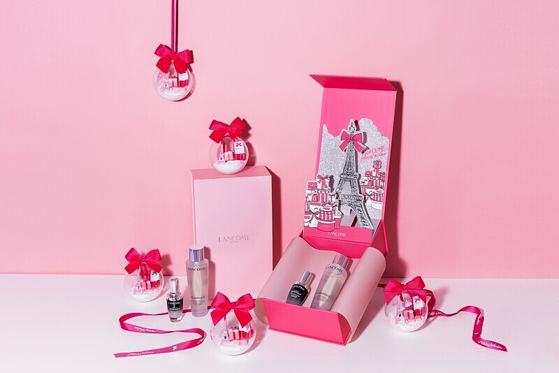 蘭蔻在11/12~12/25推出法式聖誕限定包裝服務,只要消費滿額即可獲得。首先只要任意消費,就能獲得內藏精緻巴黎鐵塔的法式聖誕許願球;第二檻是只要消費滿NT6,000,就能以擁有巴黎鐵塔立體造景,且Bing Bling的閃耀巴黎聖誕禮盒包裝。