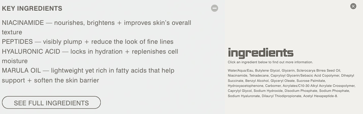 品牌簡稱為BRC,是款輕盈的保濕乳霜,訴求是修護肌膚屏障,成分中除了精華也有菸鹼醯胺和玻尿酸和胜肽等,也包含更滋潤的乳木果油、植物性角鯊烷,打造柔嫩澎潤的肌膚。