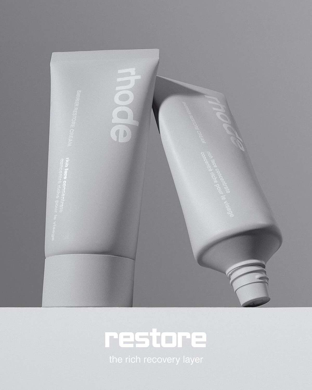 經過了半年左右的時間,Hailey Bieber個人品牌Rhode Skin在6月正式登場,產品包裝皆為一致的簡約灰色弧面,在視覺上就先帶來療癒感受。而Rhode Skin同時也是Clean Beauty的品牌,除了純素、零殘忍、無添加之外,成分配方也由皮膚科醫師把關研發,即便是敏感肌也適用。
