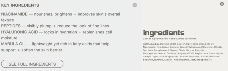 品牌內部稱之為glaze,這款凝膠狀的精華是Hailey肌膚發光的秘密之一,質地輕盈好吸收,主要成分包含了菸鹼醯胺和玻尿酸,能迅速替肌膚補水、打造健康肌底,長期使用讓肌膚穩定發光。