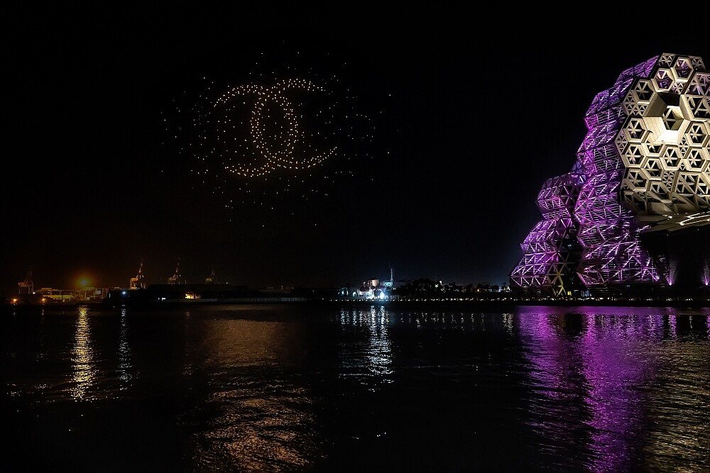 (2021/12/21更新)原來香奈兒準備的驚喜出現就在高雄流行音樂中心空中。為歡慶香奈兒品牌經典符碼N°5香水百年傳奇,2021年12月17日深夜,香奈兒於高雄流行音樂中心以空中展演點亮高雄城市港景。