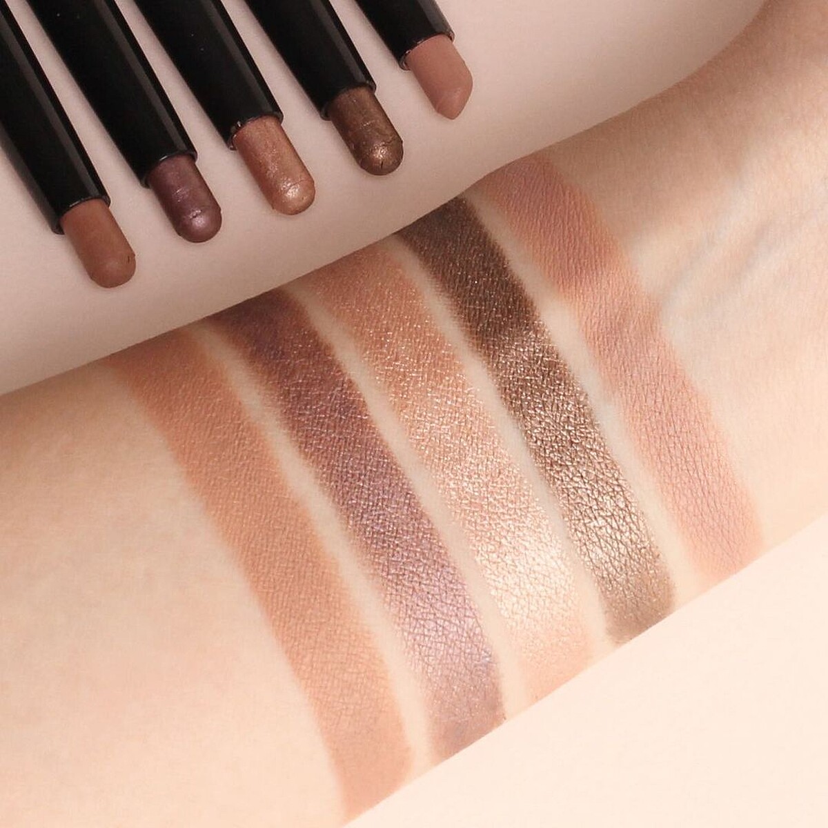 眼影筆全系列有多達20幾種顏色,從打底淺色、暈染中間色、到眼尾深色都有,質地涵蓋霧面及珠光質地,除了單擦使用,防水抗油的質地拿來作為眼妝打底也十分好用,或者可利用多色搭配在眼頭、眼尾、臥蠶等局部細節處營造出層次感,能讓眼妝更加立體有神,創造多元眼妝畫法。春夏眼妝將以裸色系當道,推薦可入手燕麥色與拿鐵色眼影筆,是不出錯的時尚安全色也有不錯的顯白效果,讓新手小白都輕鬆畫出清新好女孩風格及迷人微煙燻時尚。
