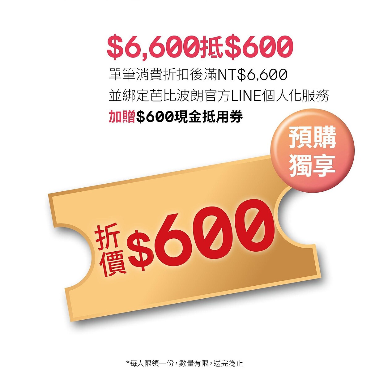 史上最划算芭比波朗母親節優惠組,今年絕對要大買特買!透過芭比波朗官方LINE預約預購會最划算!只要你是LINE綁定會員,透過LINE線上預約預購會並且消費滿$6600立刻享有現金折抵$600,還有預約消費禮2件組,內含隨身鏡及人氣維他命完美乳霜7ml。