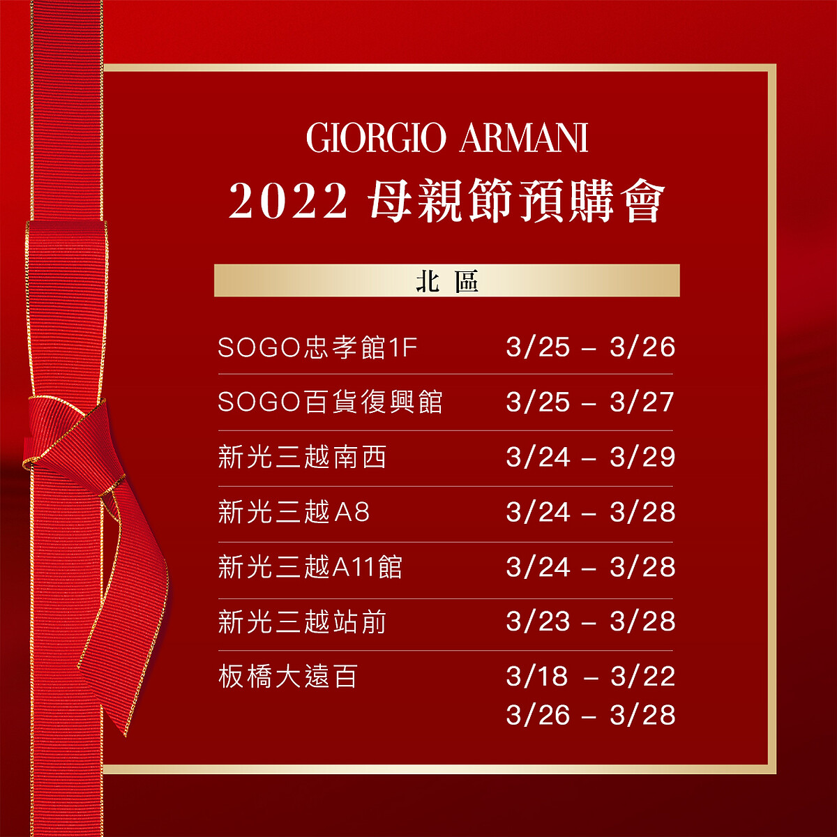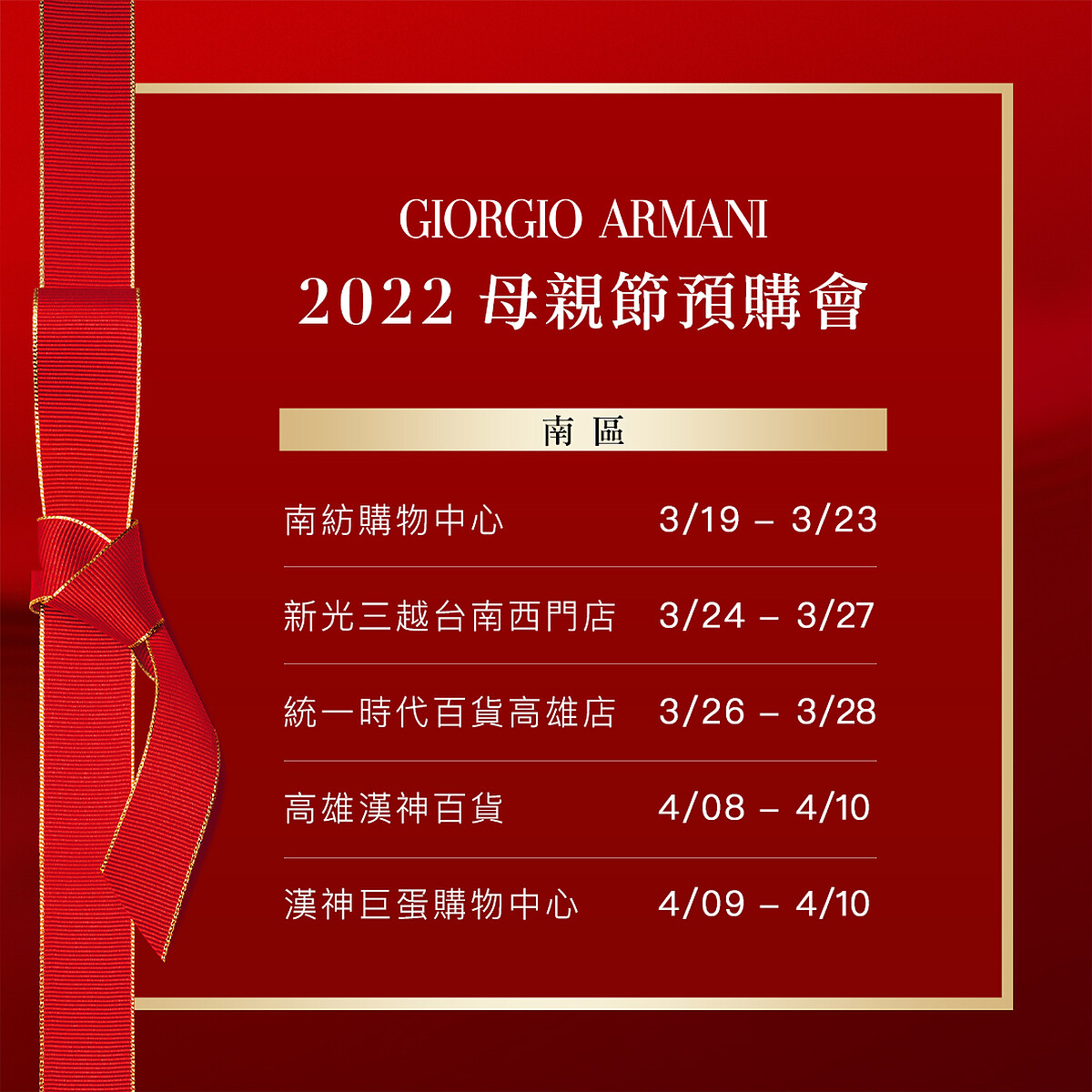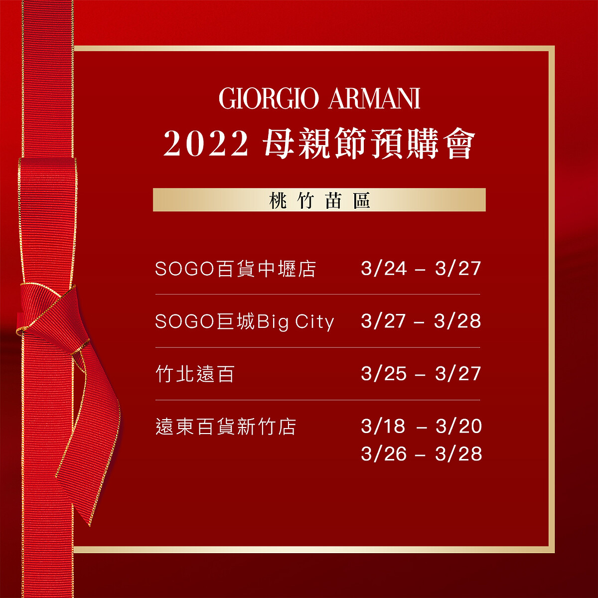【2022亞曼尼百貨預購會活動日期】