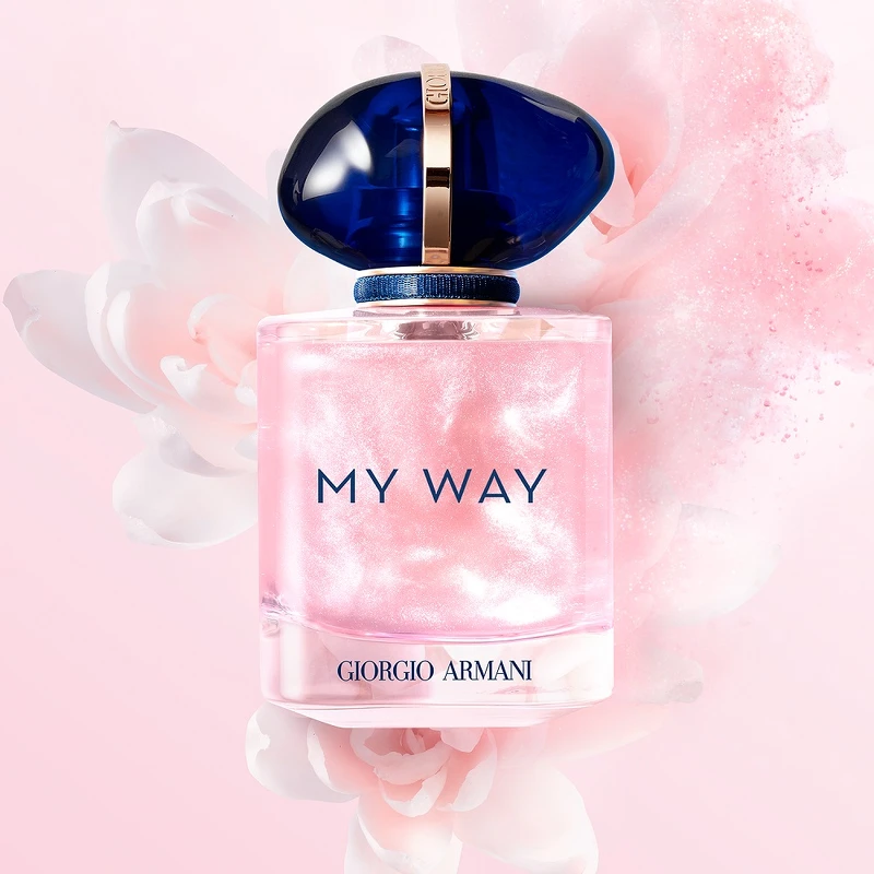 晶瑩剔透的粉色香水瓶身,搭配湛藍海洋寶石瓶蓋,香氛界的高級珠寶MY WAY淡香精今年再次超越極限!首次加入來自義大利海岸的天然珍珠母貝,細緻的珍珠光芒隨著香水輕盈流動,噴灑時依附清新淡雅的白花香調,由明亮的橙花、優雅茉莉和晚香玉、到香草、白麝香溫馨馥郁的香氣灑落手腕、頸間,彷彿陽光親吻肌膚留下閃耀迷人的光澤!視覺與嗅覺雙重享受讓人如置身夢境般浪漫!