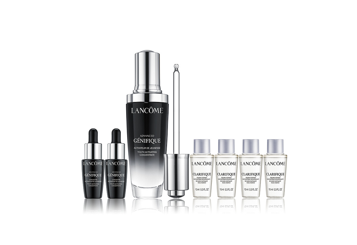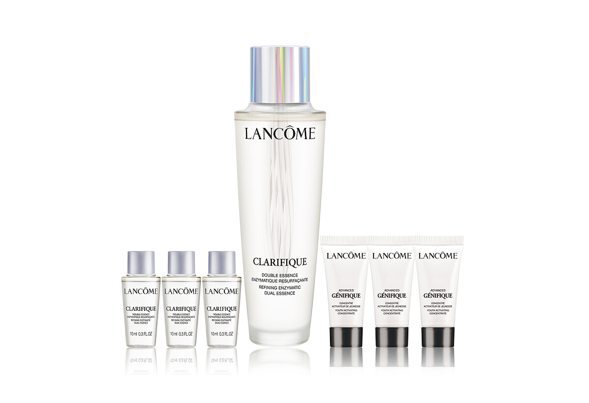 提到蘭蔻不能錯過的就是嫩亮雙星極光水與小黑瓶,3/31針對兩大明星產品,限時限量推出極光水買1送100的「超極光晶露搶購組」與小黑瓶買1送1的「超未來精華搶購組」。「超極光晶露搶購組」買一瓶正貨150ML送10ML X10!超霸氣直接送你100ML!光贈品就價值NT$2,400元;「超未來精華搶購組」小黑瓶買一瓶30ML送5ML X6,等於買一送一!最特別的是這2組的小容量贈品都設計成「幸福彩票盒」,不僅有滿滿小樣可拿,更有完整母親節檔期資訊,精緻又實用!