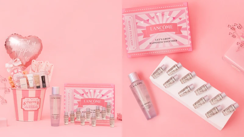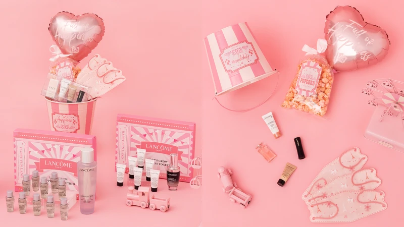 更寵粉的是,當天只要購入這2個明星特惠組任一組合,就能抱回蘭蔻宇宙級寵粉禮物「幸福爆爆桶」,價值NT$3,500元的爆爆桶內,內含所有去遊樂園的必備單品,包括「IDOLE唯我香水5ML」、「零粉感超持久粉底5ML」、「超輕盈UV水凝露5ML」、「絕對完美唇膏#274精巧版」等新熱賣體驗組,更附上粉紅樂園立體口罩(3入)、超Q粉紅爆米花與愛心小汽球,滿載而歸幸福感飆破天際!