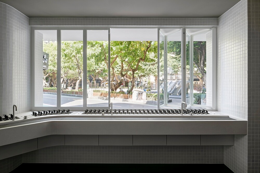 寬敞的水槽區可以窺見台灣傳統茶盤的隱微細節,向永康街充滿活力的茶館文化致敬。搭配半開放式的窗沿設計,讓徐風自然流通。