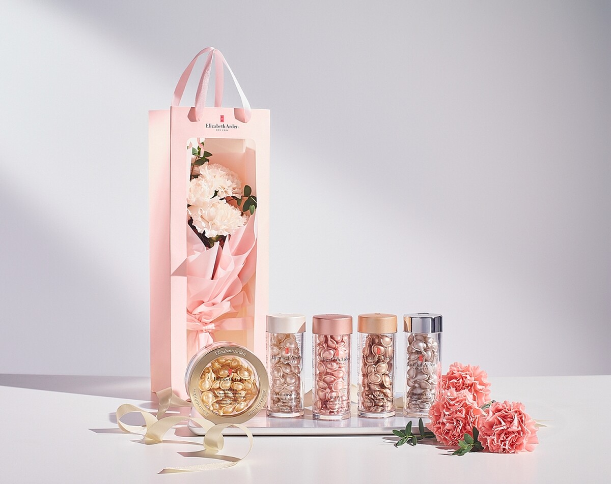花禮則以優雅質感純白盛放花朵、繫上奢華金色緞帶,讓人收到瞬間沉浸在美麗的奢寵旅程,更象徵HR赫蓮娜創立第120週年的奢華高效傳奇。