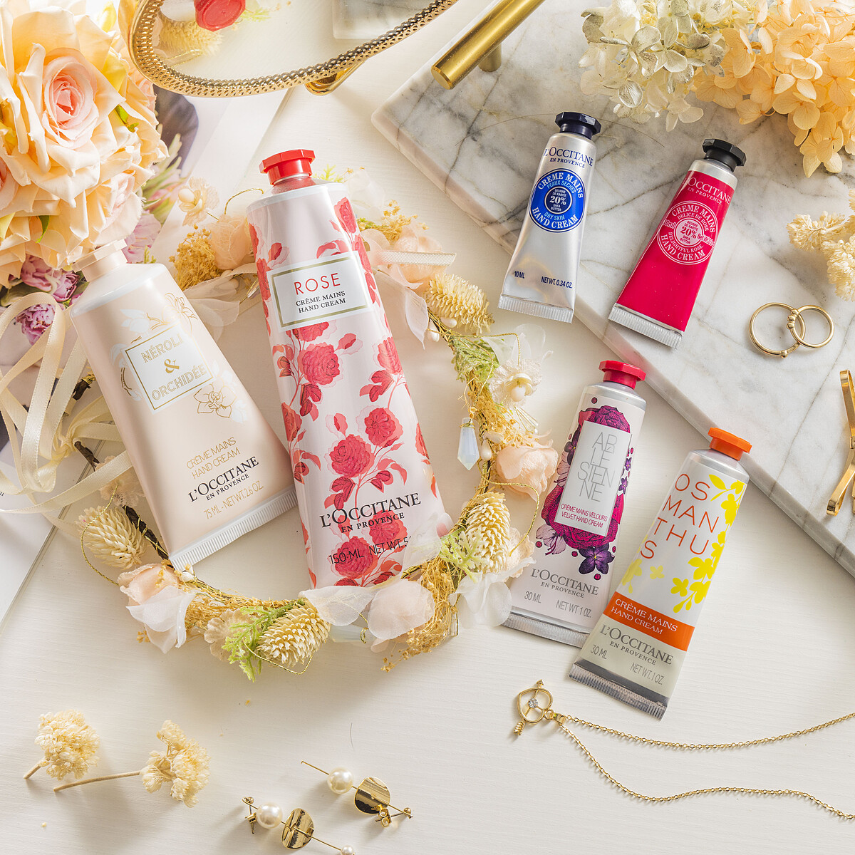 各種護手霜M編也是買不少,但很奇怪每次從包包裡撈出來的永遠是歐舒丹護手霜,用來用去還是最愛這一系列的舒適質地、精緻香味與滋潤效果,當然每款的包裝設計也各踩在顏值點上,每回拿出手都散發出質感時髦。和許多鐵粉一樣,M編最喜愛的就是最經典的乳油木玫瑰款,保濕滋潤效果真的一上手立刻有感,吸收度也快不容易殘留油膩感,擦完幾分鐘後就可馬上做事;而最迷人的就是那股不造作的天然香氣,就像走進一片玫瑰園裡,浪漫又優雅,所到之處都瀰漫著馥郁的高級感,香味還能在指間裡持續久久充滿仙氣。挑選護手霜當然要先從心儀的香味開始,歐舒丹護手霜有超過10種的味道選擇,每款都是最讓人安心舒適的天然植萃成分,如果不知道該怎麼買,M編則相當建議入手這一組以經典花香為主題的護手霜組,將最人氣的香味一次打包。不論是氣質系溫柔小姊姊最適合的桂花;追求極致浪漫的夢幻女生必備的亞爾緞帶;還是最能襯托清新復古文青女孩們的橙花&蘭花,一次都可以收齊,展現不同魅力~