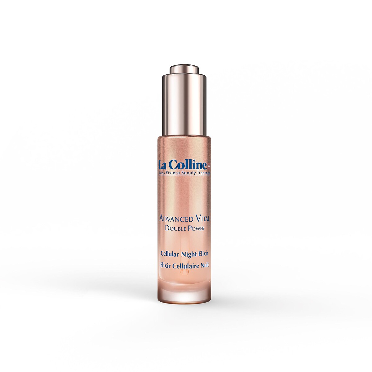 一款注入4倍濃縮的高密度肌因活化分子的抗老安瓶,獨特的雙相油性精華發揮雙重的美肌力,荷荷巴油與瑪卡達油的親膚脂質,倍感舒柔潤澤,滋潤強化肌膚修復力;4倍濃縮的高密度肌因活化分子,蘊含多樣肌膚必需活性元素,顯著激活肌膚,有效獲得再生修護能量,重建活力與緊緻度;假馬齒莧精華能舒緩肌膚,對抗環境壓力;此外La Colline獨有的 CMAGE® 複合物,更助於肌膚提升能量,煥采亮澤。雙精萃是夜間高效抗老能量補給安瓶