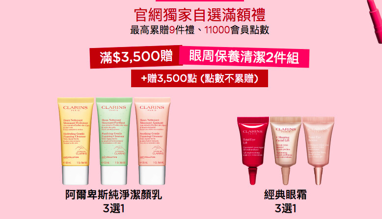 亮點8:克蘭詩官網獨家滿額禮送的超大方,好禮多到眼花,清潔、化妝水、精華、眼霜、面霜、瘦身系列全都有,組完直接等於正貨旅行組,加上克蘭詩要送就是送出豪氣感,自選滿額禮絕對不是那種一片片的試用包,全部都是管狀包裝,真摯的心意請大家務必要來感受什麼叫淚灑螢幕前!