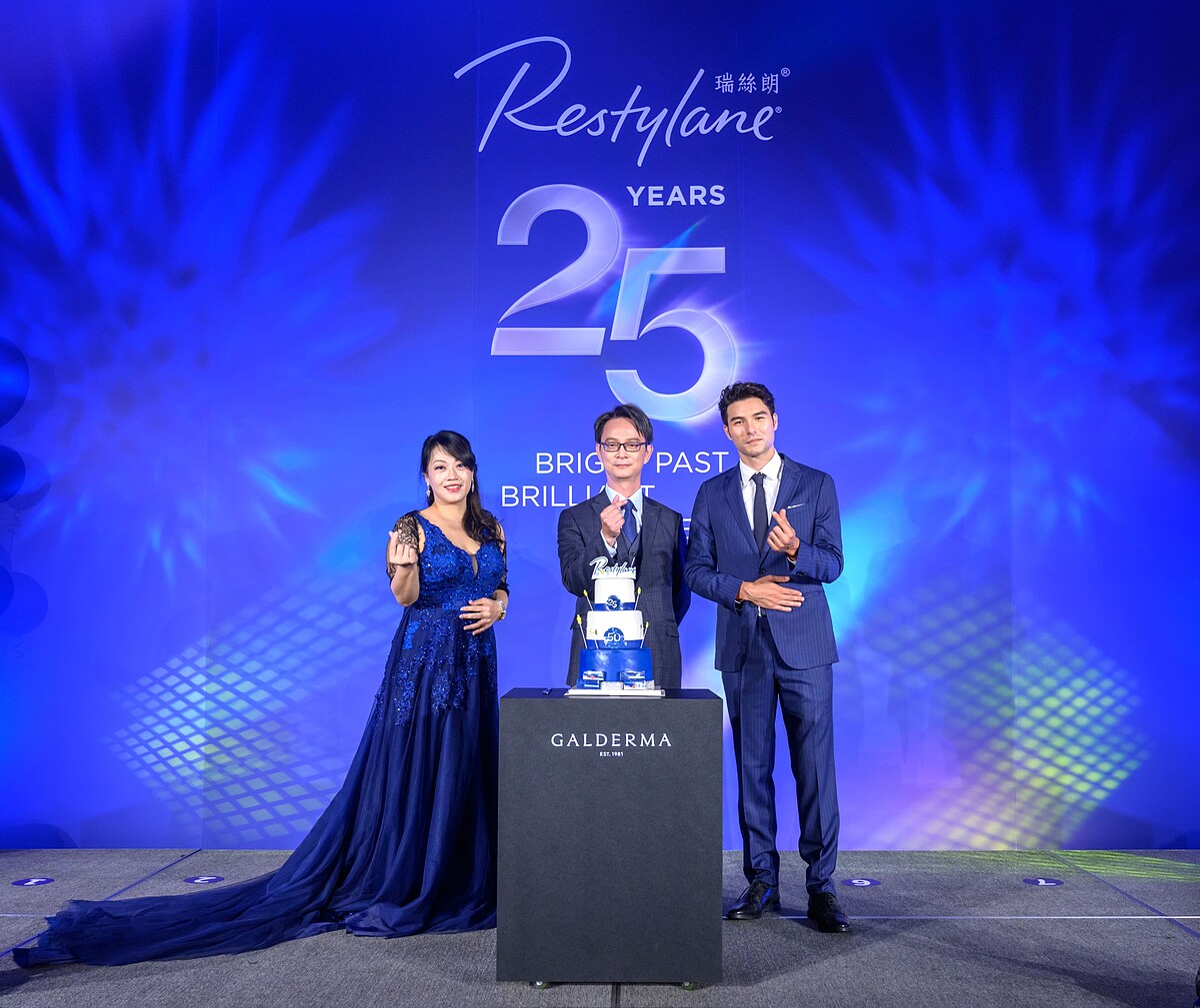 以典雅藍色為主色調的瑞絲朗25歲生日派對現場,高質感的舒適空間,讓每位來賓都在這美好的午後,跟著高德美大藥廠總經理Brian與男神鳳小岳一起切下意義非凡的25歲生日蛋糕,心中跟著這帶給無數人美好正能量的經典產品,一起繼續邁向下一個安全、美麗、自然的25年。