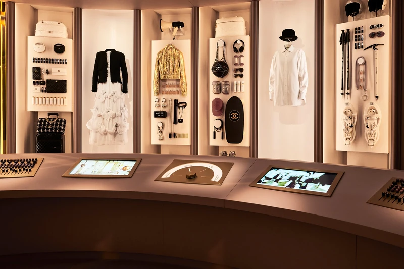 香奈兒香水是一種心態,並非以原料作為創作基礎。香奈兒以自己身為女裝設計師的經驗汲取靈感,希望在香水創作上承襲服裝設計的精神,創造搭配性、賦予形體,並對原始材料進行重製、塑形以及淬煉,就像製作服裝時處理布料的原理。會場也展示了歷代N°5廣告中經典的服裝,讓故事畫面更加鮮明。