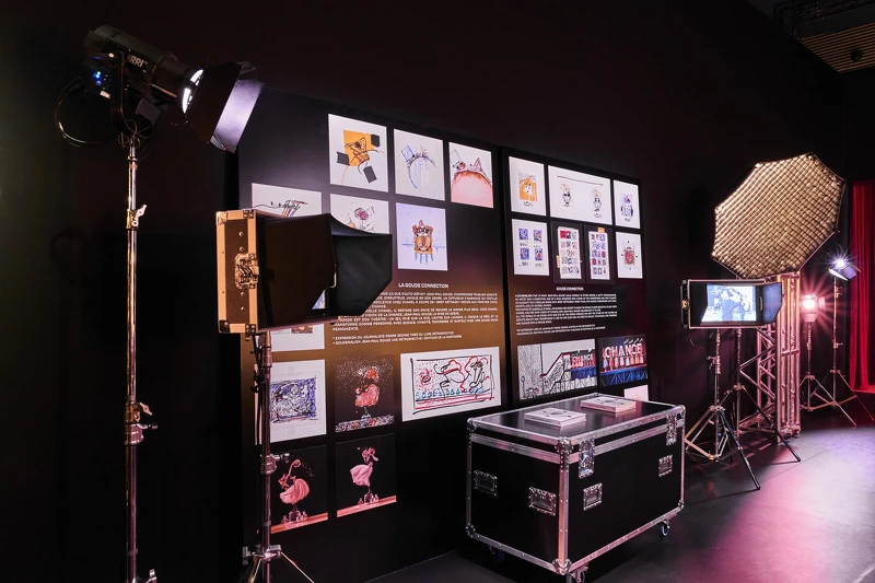 而玩心未泯的參觀者,不妨來Chance的遊戲區大展身手,走入以舞台表演後台為靈感創作的展區,有許多舞者正凖備登場,提醒觀眾,嘉柏麗·香奈兒正是 1901 年左右在穆蘭 駐唱時搖身一變成為可可·香奈兒。