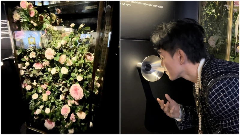 策展人Thomas du Pré de Saint Maur說明,此次的香水展更著重於風格演繹;在會展中不只重現昔日場景,更結合 VR 技術讓人身歷其境,踏入N°5展區播放著從妮可基曼、吉賽兒邦臣到瑪麗詠柯蒂亞等歷代N°5女郎歷史廣告,一旁還陳列當時華美精緻的服裝,提供參訪者探索香水各種面貌,呈現出完整的故事脈絡。