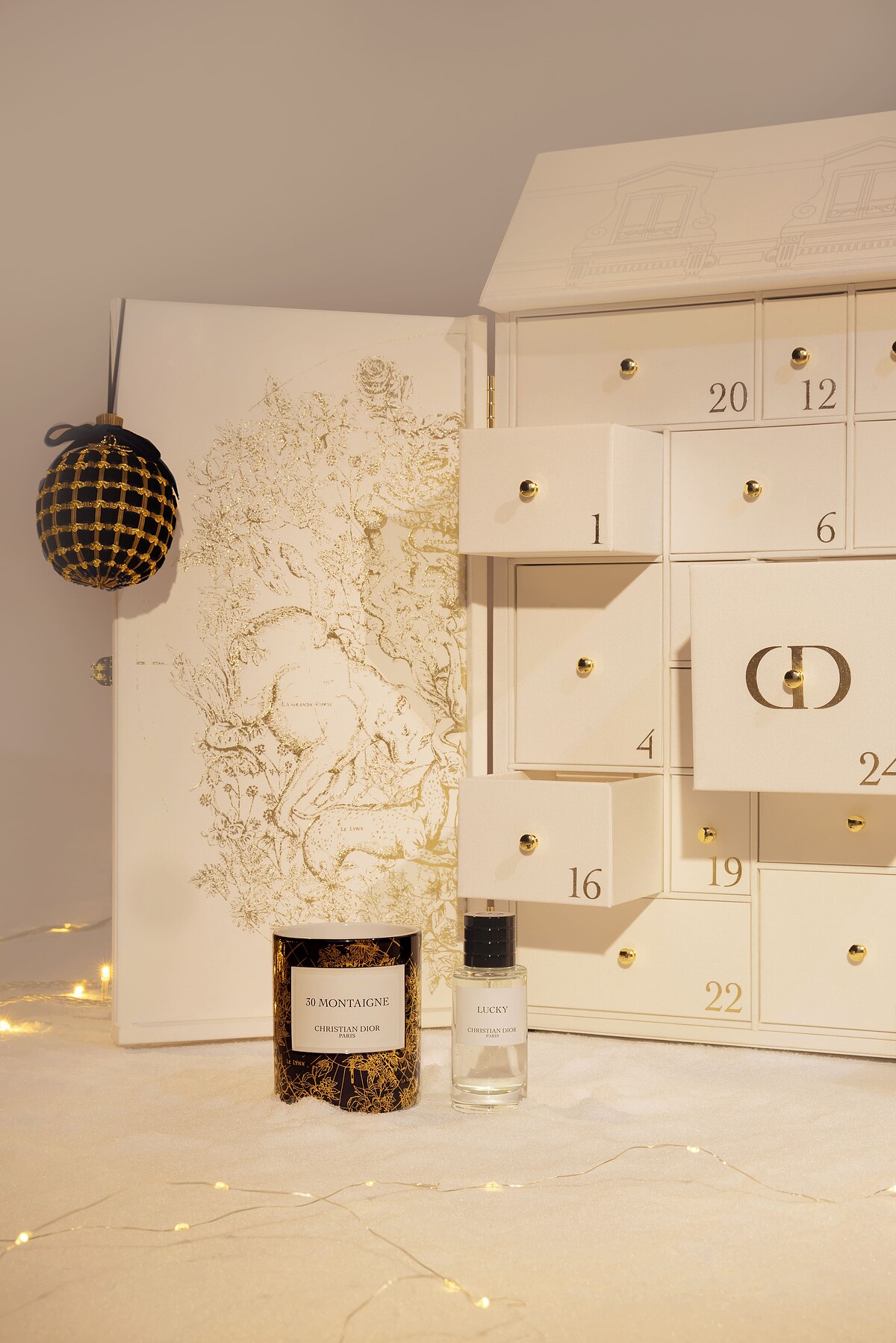 《迪奧香氛世家系列2022蒙田30香氛蠟燭典藏禮盒》:聖誕倒數月曆中最稀有的《編織工藝擴香吊飾》,這款禮盒中就有3款!由普羅旺斯薰衣草莖手工編織的擴香吊飾,是DIOR與LA MAISON FRANCE跨界精采之作,搭配閃耀星辰圖騰《蒙田30香氛蠟燭》,搶先感受散發東方辛香調的浪漫佳節氣氛!