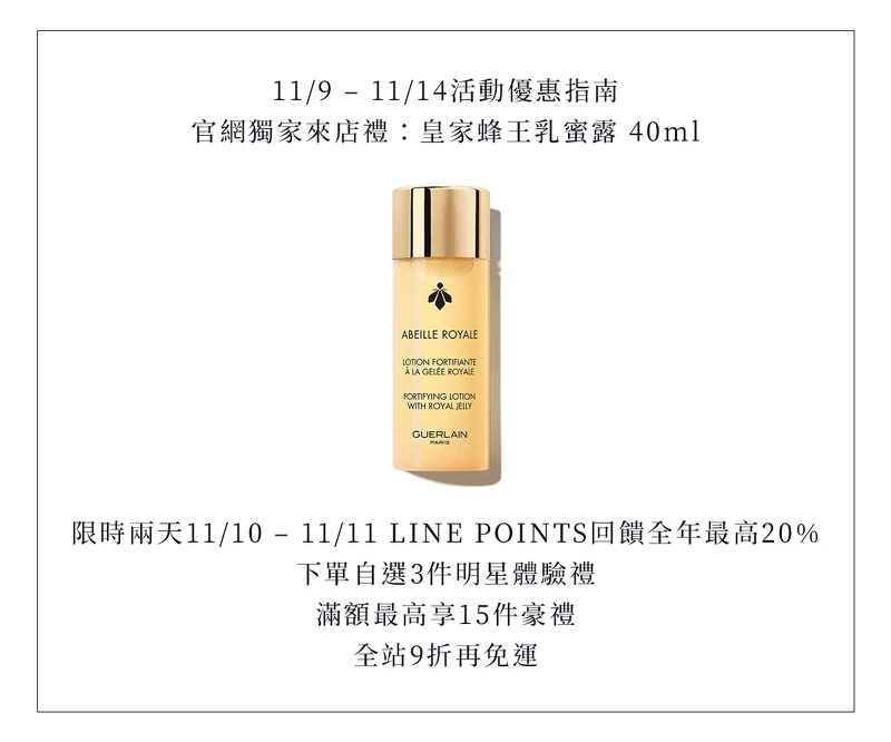 11/9-11/14嬌蘭雙11瘋狂亮點!限定霸容量六折直接用到明年!