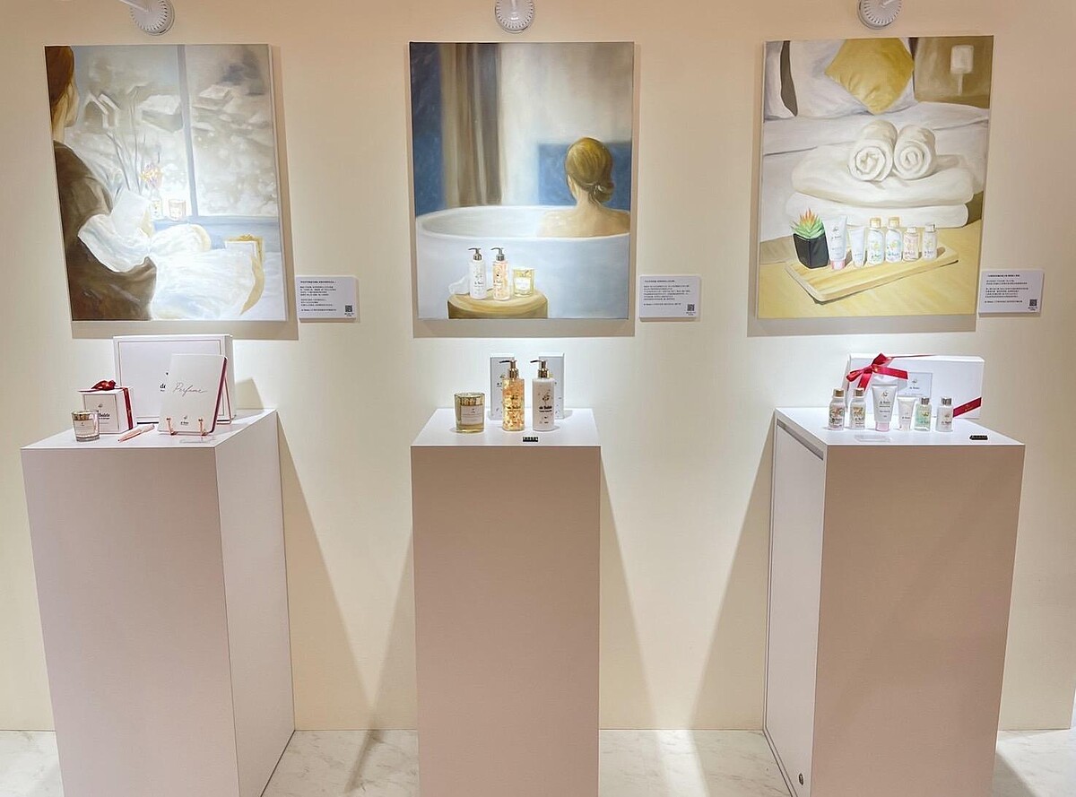 致力於提倡「自然輕奢香氛生活」的deBalets小巴黎,陪伴並支持每個女孩好好寵愛自己, 讓生活過的精緻優雅! 除了重視生活美學,內心的平衡與富足也相當重要,這次直接將藝廊展間搬進信義區,將自家商品結合純白色系藝廊、油畫的形式,透過畫家的巧手,將經典產品洗護、沐浴、香氛蠟燭等帶進畫中。藉由畫中的意境,穿越時間空間,感受小巴黎帶來「心靈平衡」、「享受獨處」、「旅行儀式感」的美好 ! 除了傳遞品牌精神核心,也讓顧客在選購商品的同時,能透由視覺與嗅覺,來一趟短暫的香氛藝廊之旅。