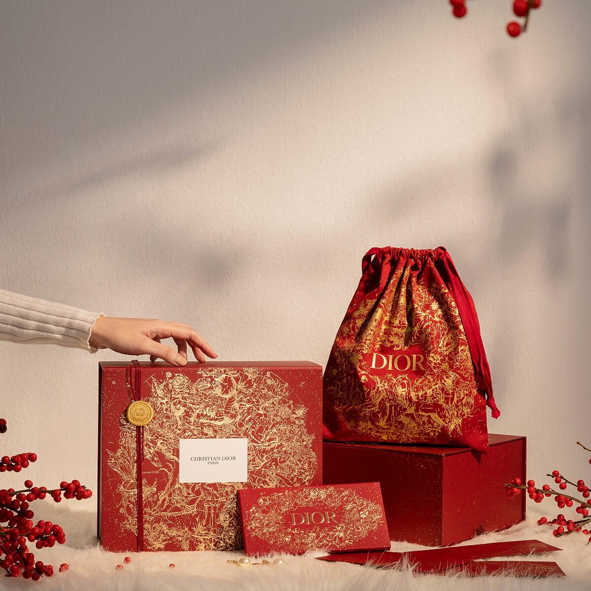 12/30起於DIOR線上旗艦店,入手任一香氛世家商品,即享香氛世家新春限定包裝服務,繫上新年紅繫繩,以CD logo精緻封蠟貼紙完美彌封,不限金額入手香氛世家系列商品,享《迪奧2023新年珍藏版束口袋》,新春包裝活動至2023/1/19日止。