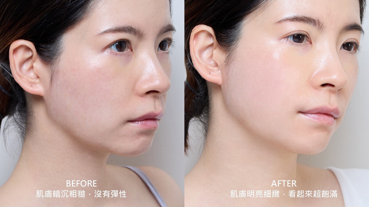 最明顯的感受是肌膚真的變得更有彈性,整個臉形往上UP UP,摸起來細緻又光滑,連上妝都變得更服貼透亮。