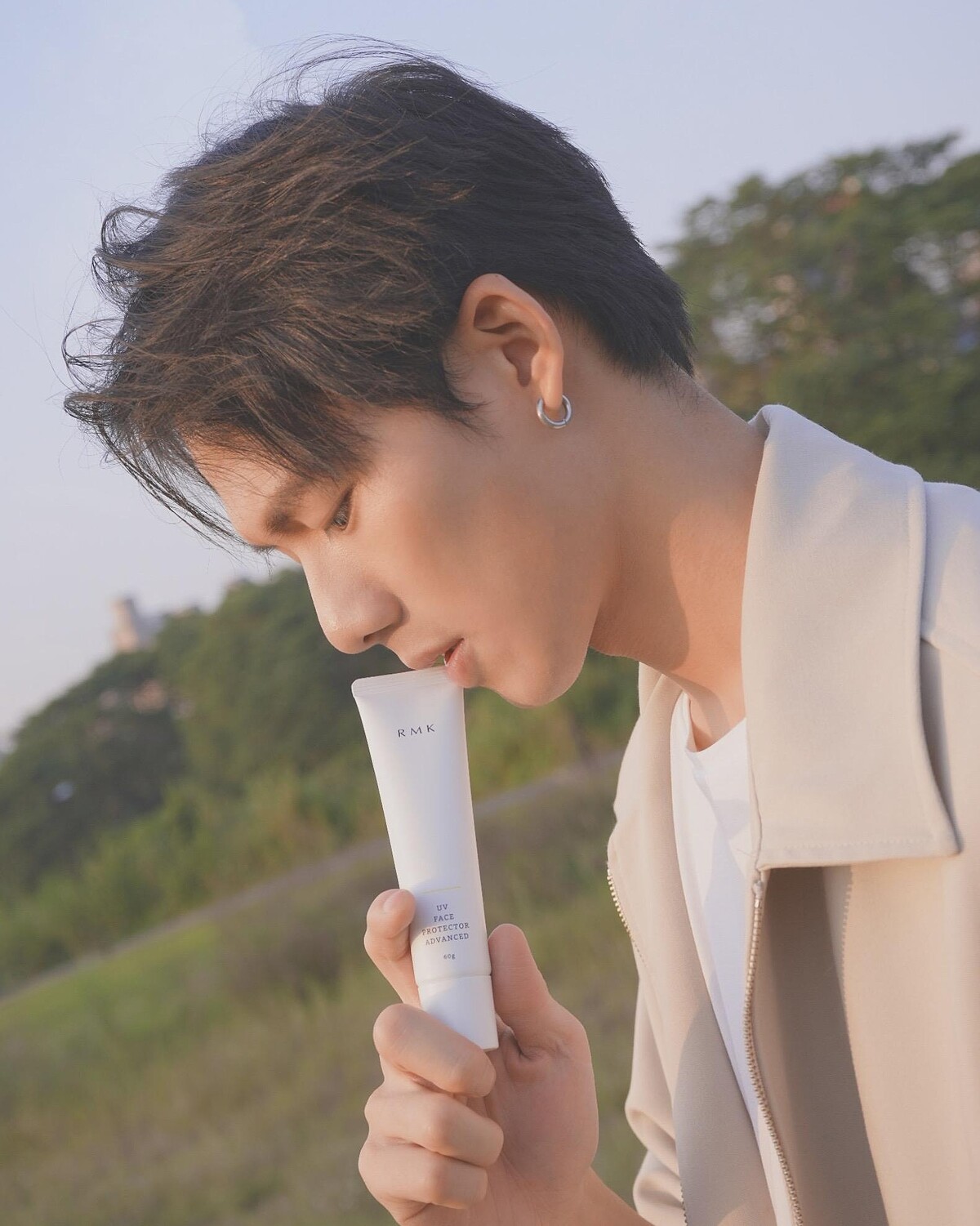 吳念軒說他的心得是:比起女生,更常戶外活動的男生其實更該注重防曬,他自己無論上戲或是日常外出都很注重防曬,但他承認之所以可以持之以恆塗抹防曬品,都是因為這款RMK UV防護乳高效保濕型,質地非常細緻舒服、延展性很好,擦上去非常的服貼,它完美的水感,即使強風一直吹臉也不覺得乾,臉也不會過敏發癢,當拍戲上妝時他會用具有潤色效果的透光勻色型,除了不容易脫妝,戴口罩也完全ok!